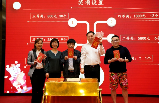 最激動(dòng)人心的時(shí)候到了,董事長(zhǎng)劉錦鐘先生邀請(qǐng)了兩名嘉賓共同進(jìn)行了抽獎(jiǎng),最終財(cái)務(wù)部的一位同事榮幸地獲得了該獎(jiǎng)項(xiàng)。