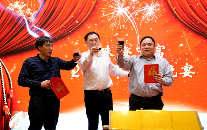 在一段激情四射、充滿活力的《舞蹈串燒》之后,董事長(zhǎng)劉錦鐘先生為大家進(jìn)行新春致辭,并帶領(lǐng)公司核心管理成員向全體人員敬酒,預(yù)祝中富越來(lái)越好!