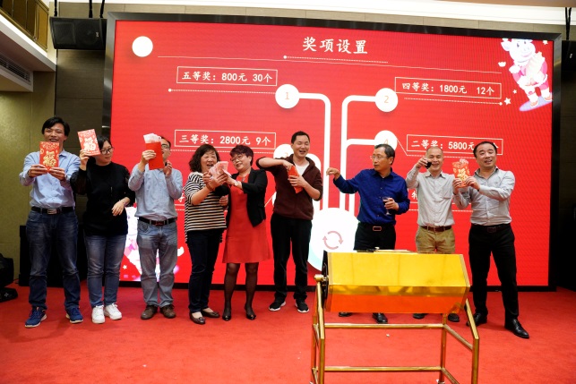 五等獎(jiǎng)率先開啟了抽獎(jiǎng)模式,重慶廠張總、西安廠趙總、蘭州廠張總、長(zhǎng)沙廠陳總、曼谷廠饒總、杭州廠朱總、供應(yīng)鏈王總、工會(huì)吳主席、技術(shù)部吳總、IT部潘總、資產(chǎn)部寧總分別抽取33名五等獎(jiǎng)獲獎(jiǎng)?wù)卟⑦M(jìn)行了頒獎(jiǎng)。